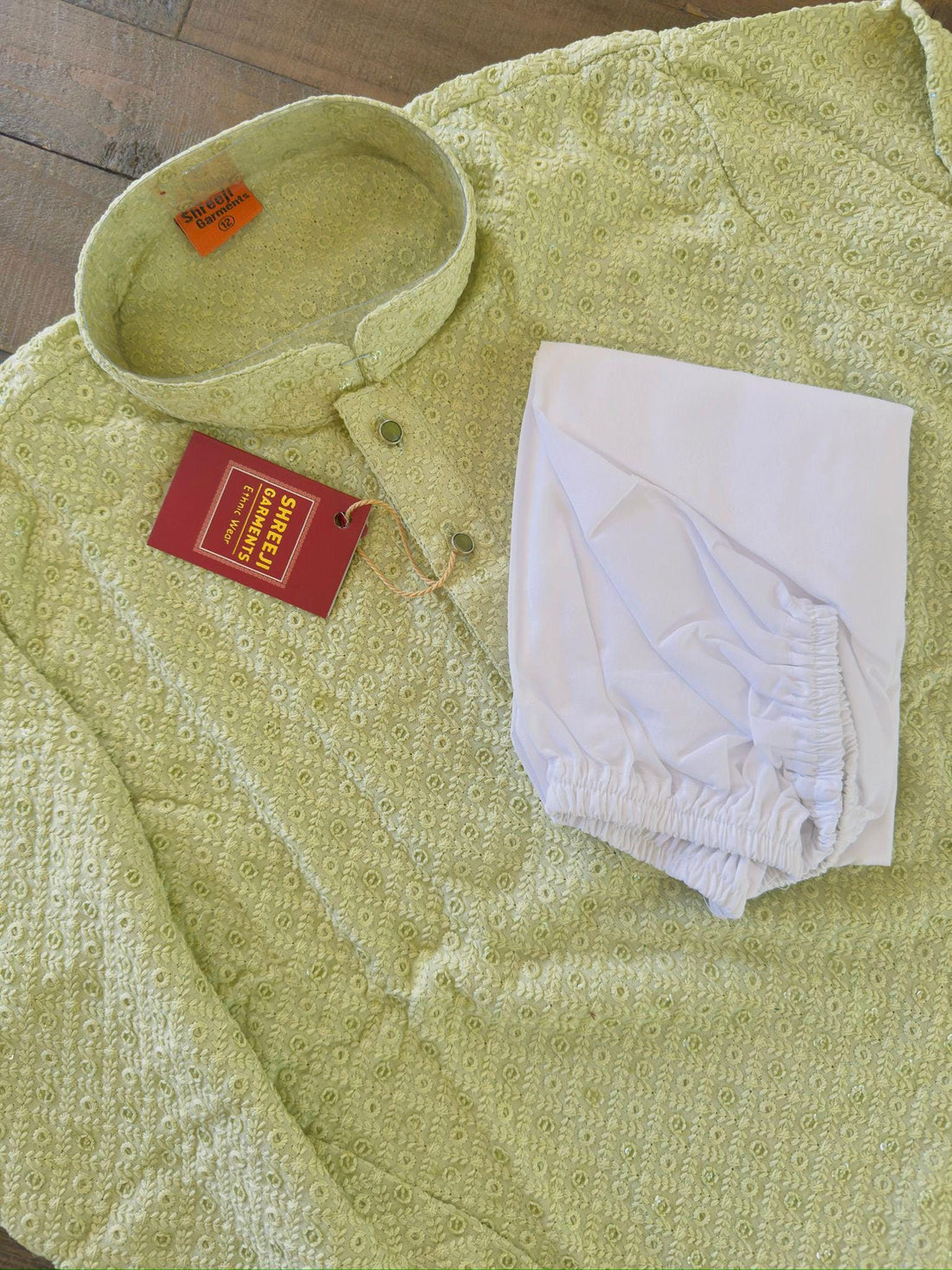 This is a pista green color lucknawi work kurta pajama for Boys. Custom Made Indian...